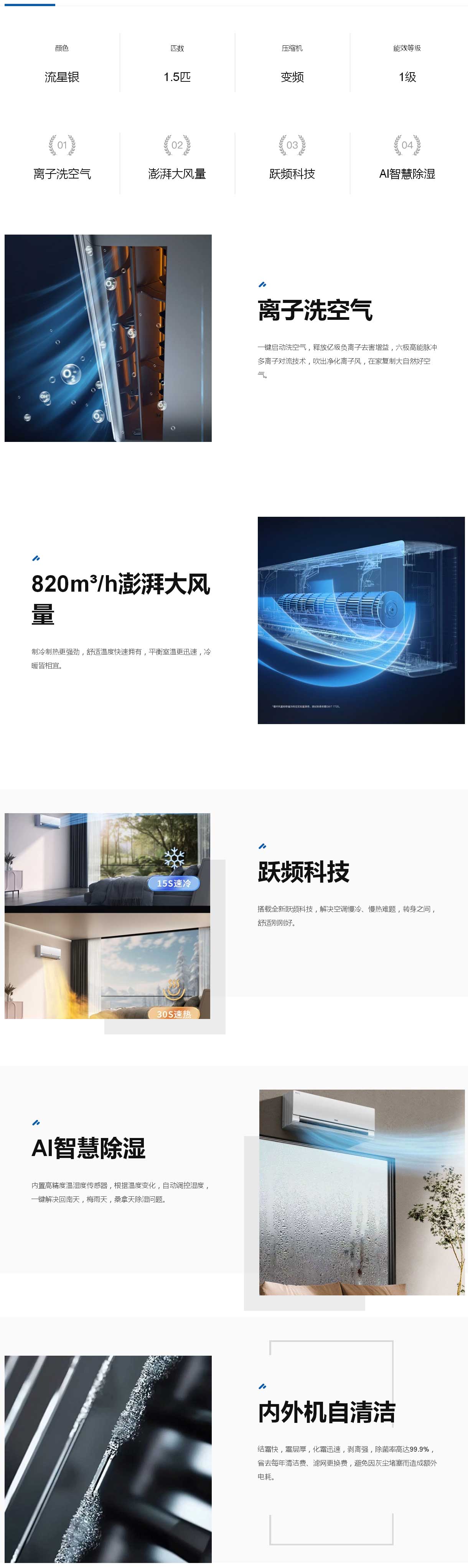 洗空氣 1.5匹壁掛式變頻空調(diào)-家用空調(diào)系列